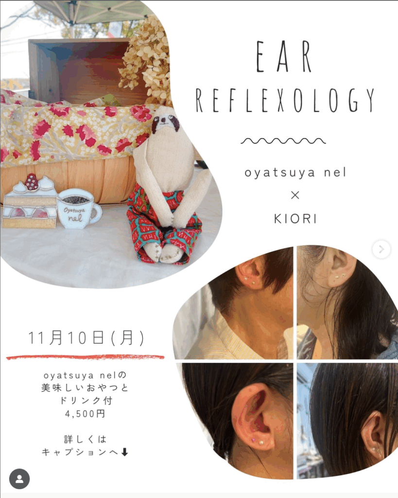 11月10日(月)は、KIORIさんによる、耳つぼリフレクソロジーが開催されます。